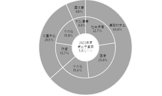 それでは二つ図を見てください。(図2)は日本の国家予算の歳出で、(図3)は米国の国家予算の歳出です。